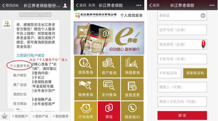 點擊菜單欄“我的賬戶”—“個人服務平臺”,進入個人服務平臺主頁,點擊“綁定”,填寫相關信息,輕松完成賬號綁定!