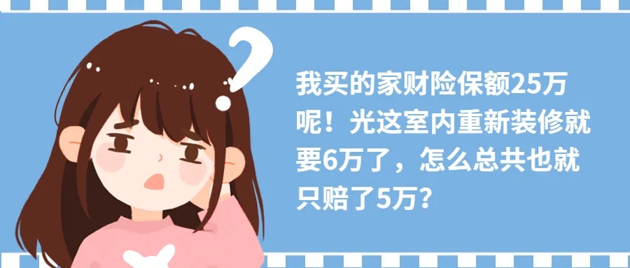 再比如說,室內(nèi)裝潢賠償限額為3萬元,但實(shí)際損失2萬元。