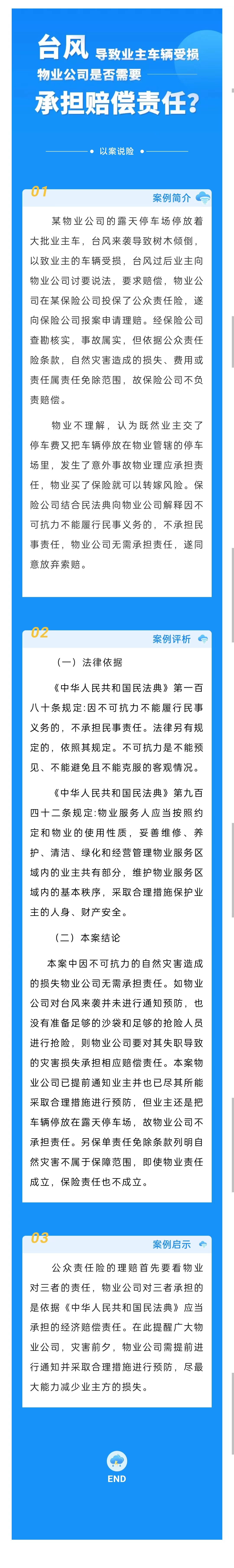 【以案說(shuō)險(xiǎn)】臺(tái)風(fēng)導(dǎo)致業(yè)主車(chē)輛受損,物業(yè)公司是否需要承擔(dān)賠償責(zé)任?