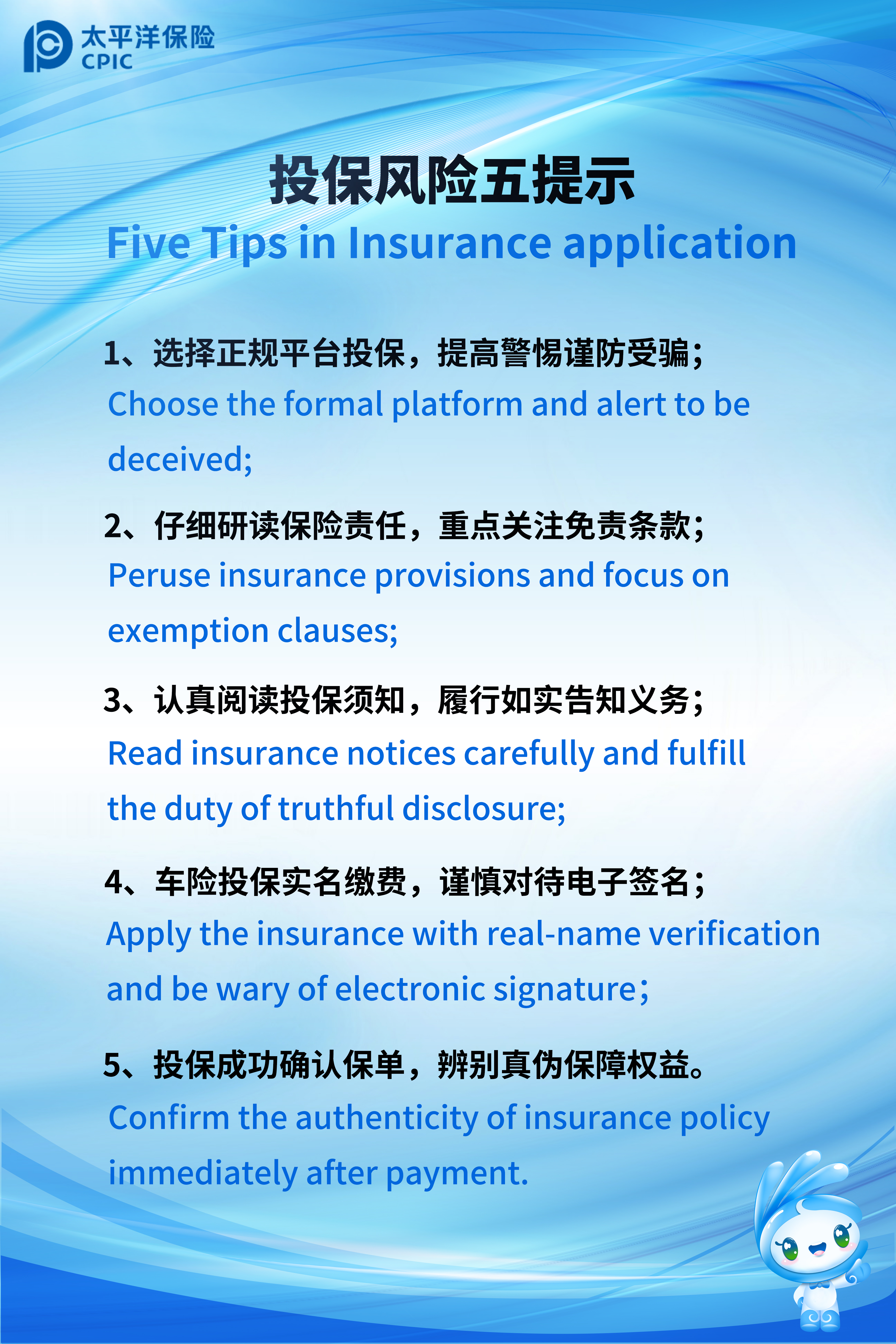 【投保提示】“投保風(fēng)險(xiǎn)五提示”中英文雙語(yǔ)版提示