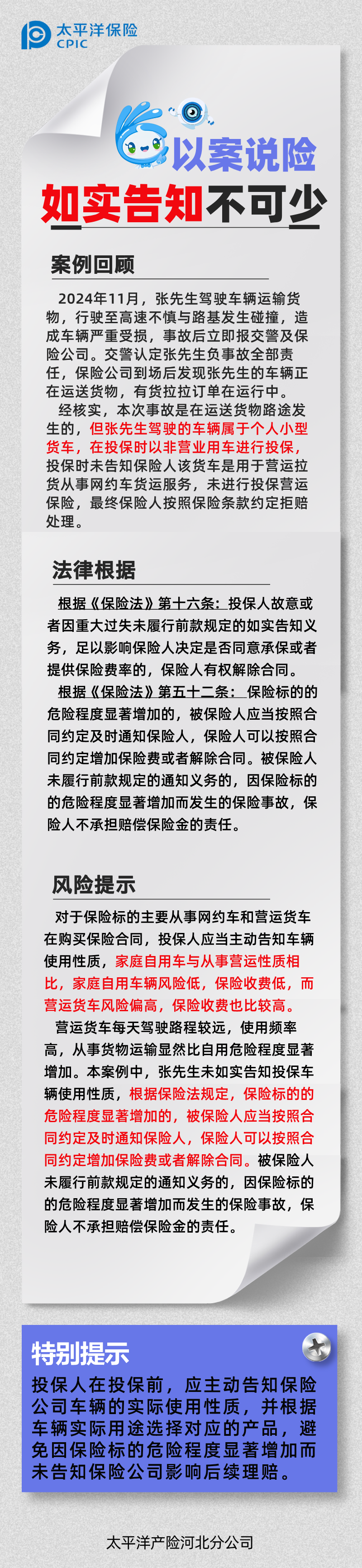 以案說險 | 車用性質(zhì)勿隱瞞,如實告知不可少
