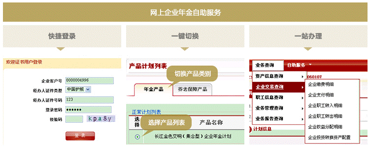 長江養(yǎng)老網(wǎng)上平臺是養(yǎng)老金行業(yè)內(nèi)首家實(shí)現(xiàn)全天候服務(wù)與全業(yè)務(wù)覆蓋的電子商務(wù)平臺。平臺全面支持企業(yè)年金、養(yǎng)老保障等養(yǎng)老金業(yè)務(wù)的辦理與查詢,可一站式滿足企業(yè)包括繳費(fèi)、領(lǐng)取、人員管理、資產(chǎn)查詢、報表查詢等在內(nèi)的所有業(yè)務(wù)管理需求。目前平臺已服務(wù)企業(yè)數(shù)達(dá)6000多家,個人達(dá)80萬人,已累計(jì)辦理養(yǎng)老金業(yè)務(wù)60多萬筆,覆蓋了90%以上的企業(yè)年金客戶群,超過88%的網(wǎng)上業(yè)務(wù)辦理率為業(yè)內(nèi)最高。長江養(yǎng)老網(wǎng)上平臺搭建了“金融服務(wù)民生”的橋梁,以顯著的優(yōu)勢為廣大客戶帶來一流的服務(wù)體驗(yàn):