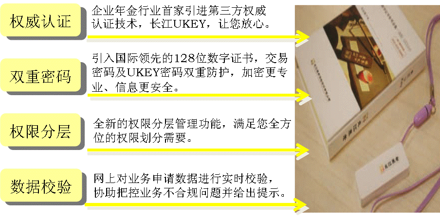 長江養(yǎng)老在信息安全和業(yè)務(wù)風(fēng)險防控技術(shù)方面位于行業(yè)前列,不僅率先在業(yè)內(nèi)引進(jìn)第三方權(quán)威數(shù)字認(rèn)證技術(shù),還根據(jù)養(yǎng)老金業(yè)務(wù)特點(diǎn),開發(fā)設(shè)置了網(wǎng)上交易密碼、經(jīng)辦人權(quán)限分層管理、業(yè)務(wù)數(shù)據(jù)實(shí)時校驗(yàn)等風(fēng)險防控措施。一系列技術(shù)手段結(jié)合成的隱形安全屏障,能有效防止企業(yè)年金信息外泄,極大提高業(yè)務(wù)辦理的安全性,令企業(yè)樂享安心無虞的年金服務(wù)。